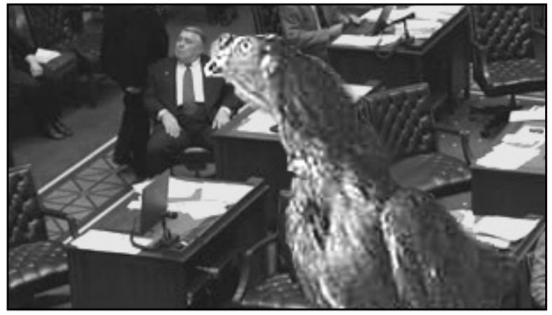 Sen. Angela Monson, D-Oklahoma City, was briefly endangered when McGee lashed out with his feet, each talon equipped with razor-sharp knives. The fowl lawmaker was wrestled to the ground through the bipartisan cooperation of Sen. Johnnie Crutchfield, D-Ardmore, and Senate Republican Leader Glenn Coffee, R-Oklahoma City.