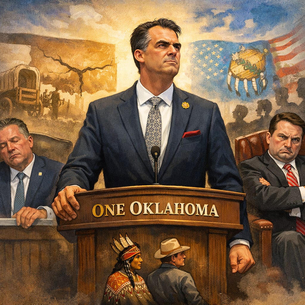 One can’t help but have the sinking feeling that Stitt could very well be the last Oklahoma governor to, at great political cost to himself, represent the last dying ideals of the state’s founding fathers — of all races — who believed that Oklahoma would be one unified “American” state, as opposed to two separate states, Oklahoma and Sequoyah, or much worse, a confusing patchwork geographic area of sovereignty-nebulousness, partially American/Oklahoman and partially something else.