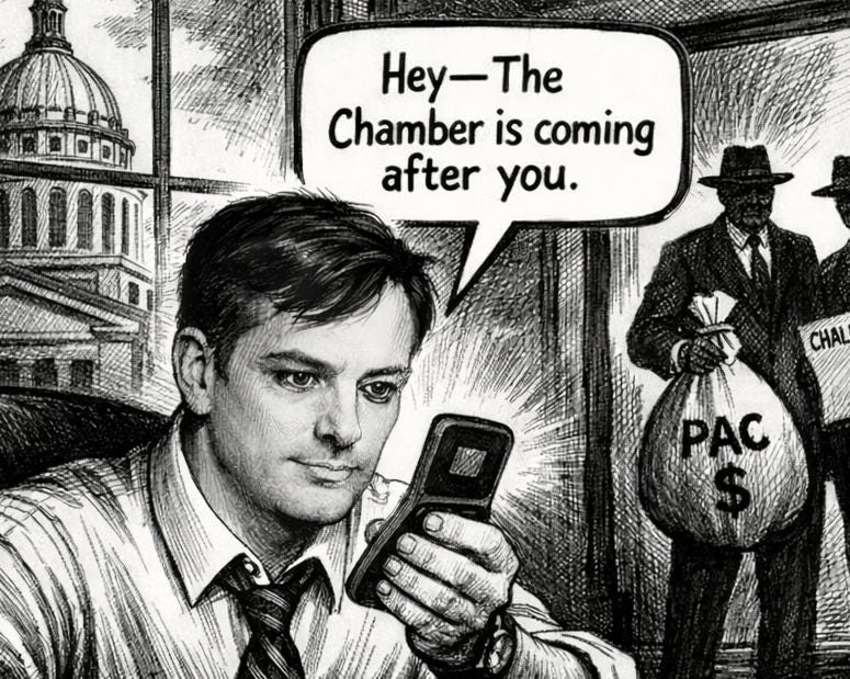 After being tipped off by an insider whistleblower that I was one of two grassroots legislators the powerful State Chamber of Commerce intended to defeat — using, after the recent Supreme Court ruling, an until-then unimaginable amount of money — I had the forewarning needed to immediately activate my re-election effort.